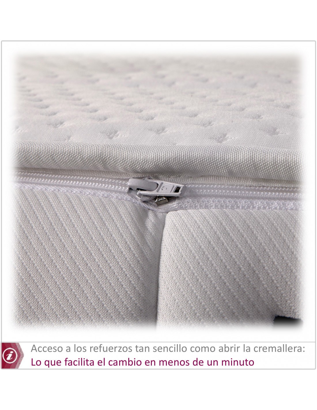 Estos refuerzos tienen una forma ovoide que garantiza que una vez encajados no se mueven salvo que queramos quitarlos. Al recibir el colchón en casa recibirás también un documento que te indica como cambiar estos refuerzos con absoluta facilidad.